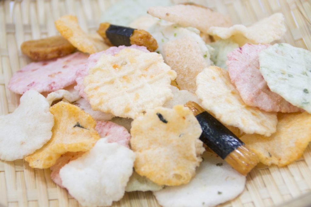 工場2階の見学通路から自由にせんべいの製造工程をご覧いただけます。
